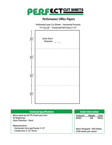 Perfect™ Perforation Formats - Laser Perfs every 3 ½" White - 8 ½ X 14 24 lb. (90 gsm)