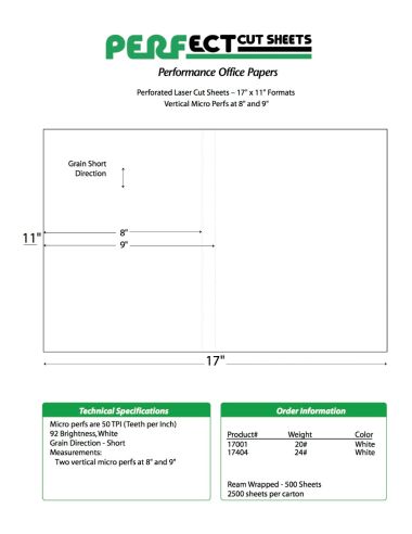 Perfect™ Perforation Formats - Vertical Separation Perfs at 8" and 9" White - 17 X 11 24 lb. (90 gsm)