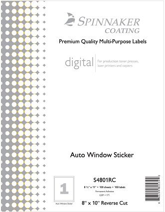 This facestock is part of a construction in which the liner is printed , picture frame matrix removed and the label applied to the inside of an auto window. The face becomes a carrier in this application and is typically not printed however , this stock is a bright White , uncoated paper duitable for production toner , laser printer/copiers